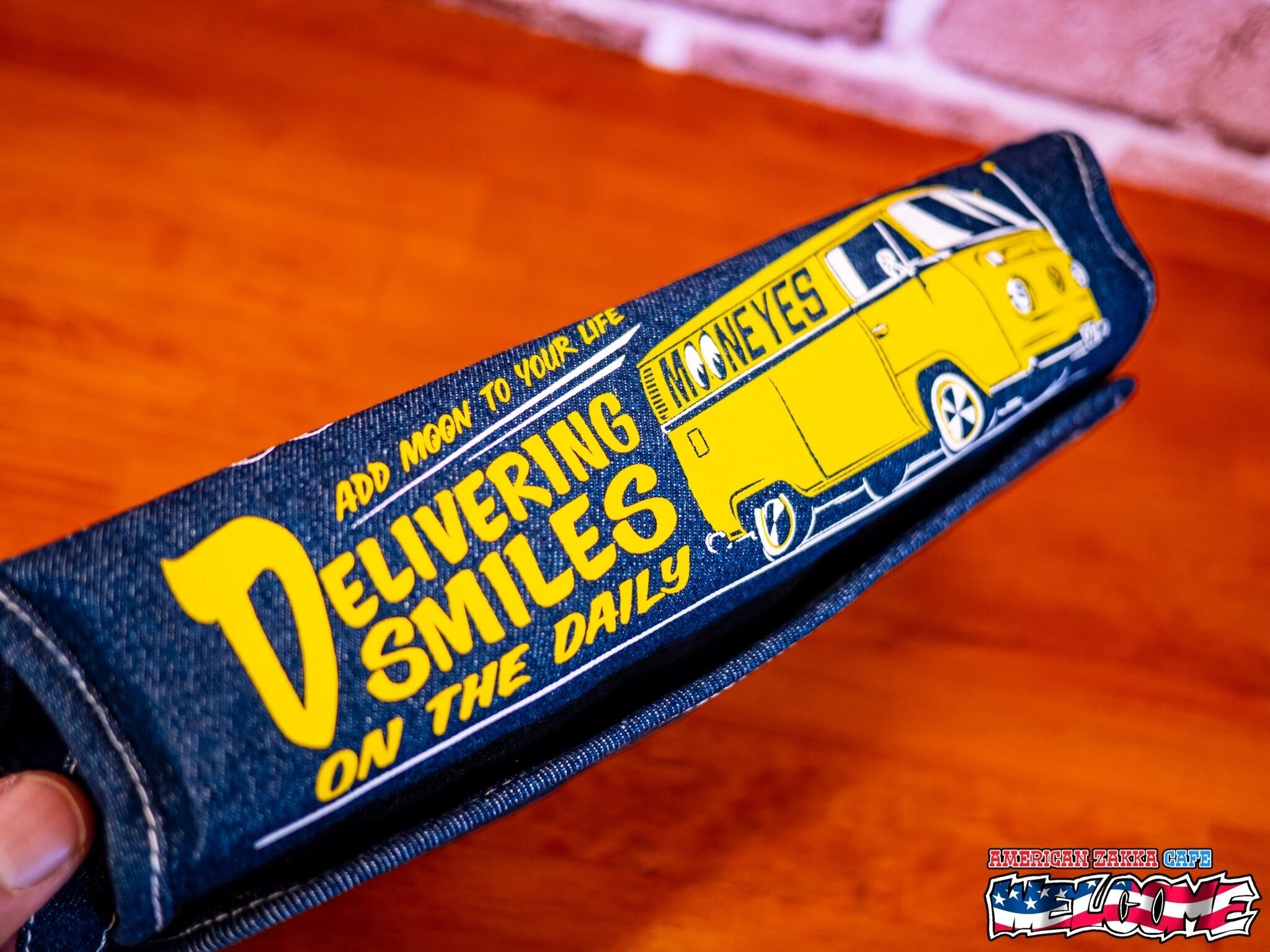 Yellow Color の VW Type-II と 『ADD MOON TO YOUR LIFE』、『DELIVERING SMILES ON THE DAILY』のメッセージをプリントしました。